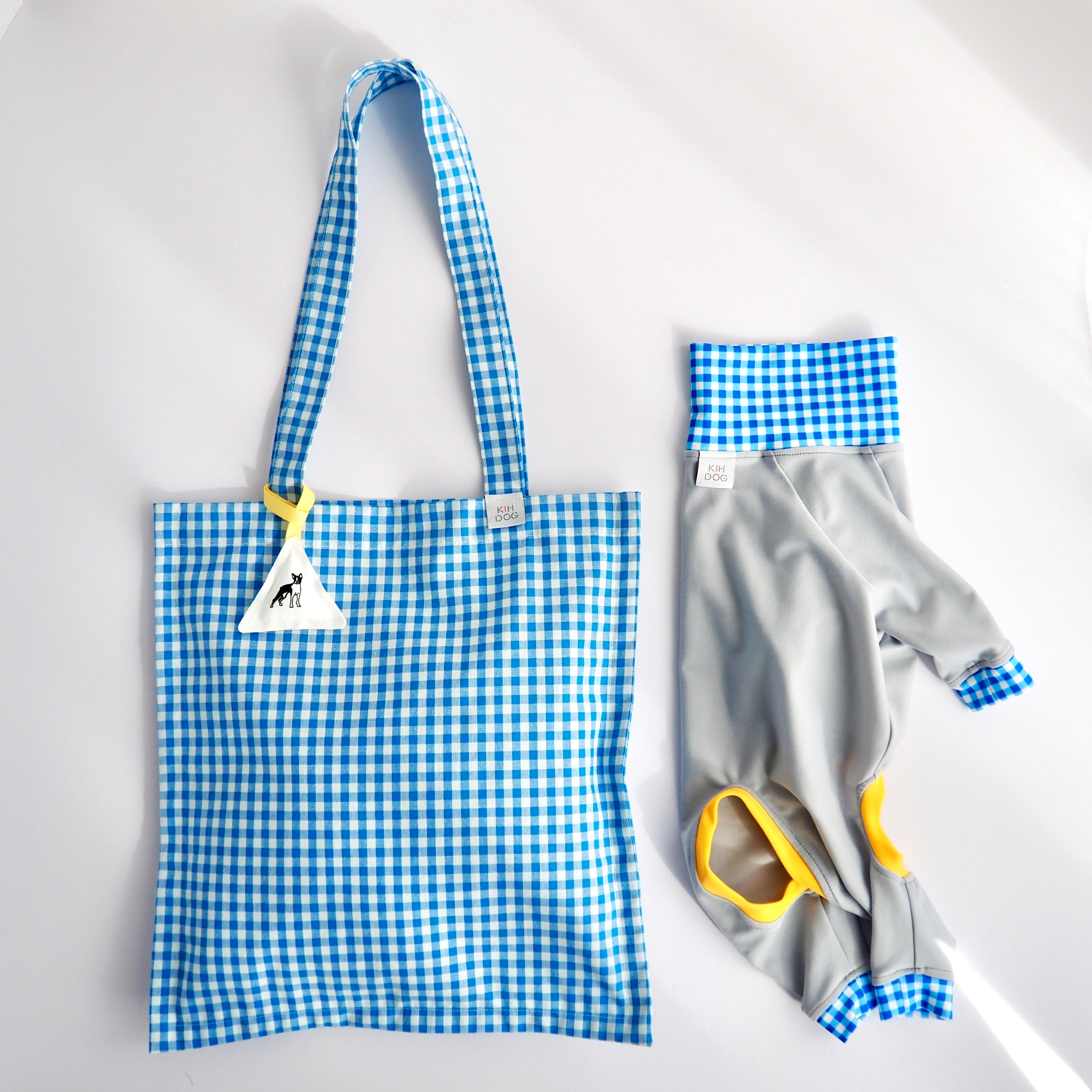 ギンガムチェックシリーズのお洋服と合わせて愛犬とリンクコーデもできます。
